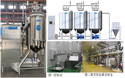 優(yōu)康恩自動化料系統用于對粉料和其它配料進行乳化和水化的混料系統設備。其中真空混料機可在密閉真空容器下進行高速剪切乳化混合綜合產品、各種粉末和液體等,每小時化粉量可達到3T-5T。優(yōu)康恩自動化料系統可利用真空作用將配料輸送到化料設備中,省去了操作工承擔這項繁重工作的需要。
